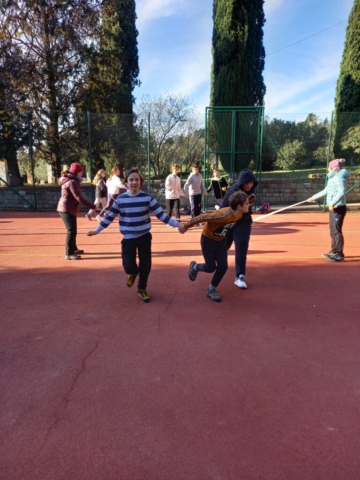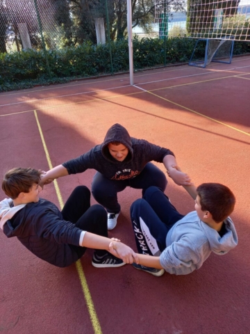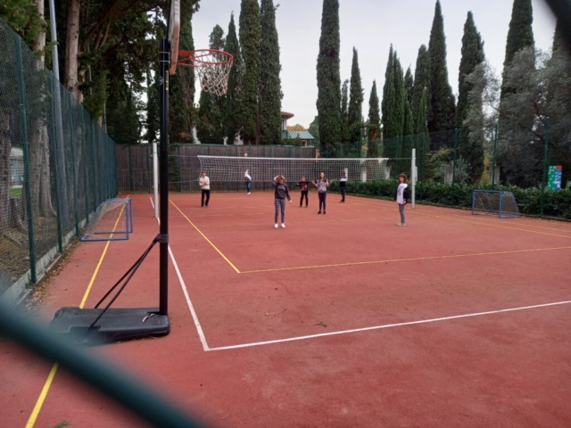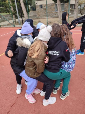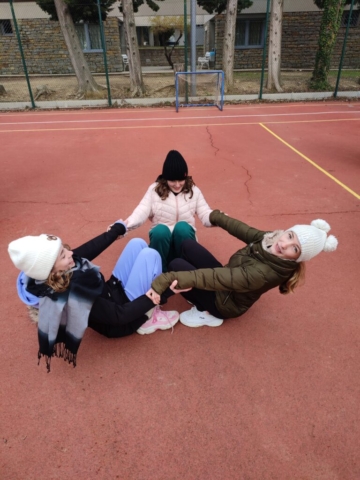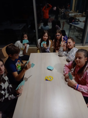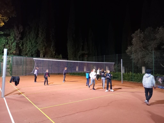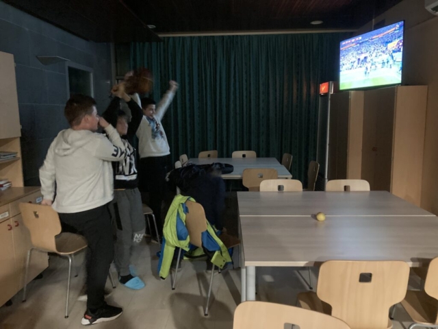In naš prosti čas? Veliko smo zunaj, igramo odbojko in namizni tenis, se družimo, igramo družabne igre. V ponedeljek smo si nekateri ogledali del nogometne tekme, v torek pa smo imeli filmski večer.