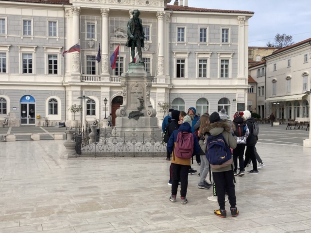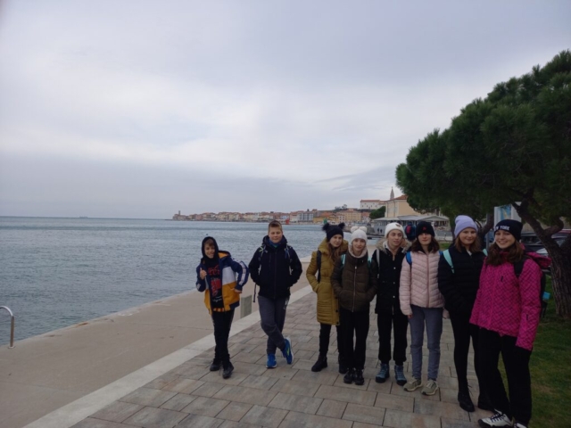 V torek smo se v prvi skupini najprej opremili s pametnimi urami, ki so nam beležile srčni utrip, prehojene kilometre, idr., saj smo se odpravili do Pirana.