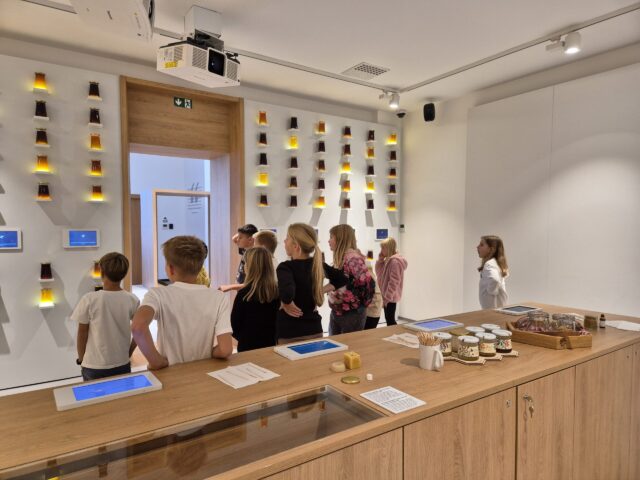 Posebej zanimiv je bil ogled interaktivnih predstavitev, kjer smo lahko poslušali zvoke iz panja, videli notranjost čebeljega sveta in izvedeli, kako nastane med. Za pokušino smo si izbrali akacijev med, ki smo ga polili čez medenjak.