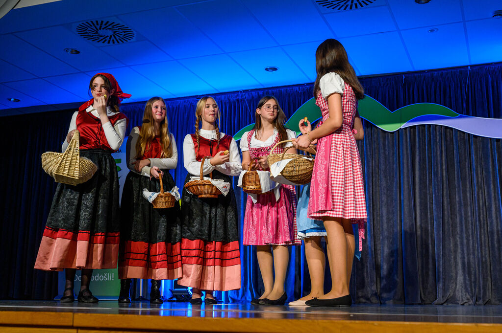 V soboto, 11. 10. 2025, je v avli Osnovne šole Ferda Vesela Šentvid pri Stični potekala osrednja prireditev ob 25. obletnici pobratenja med občinama Hirschaid in Ivančna Gorica. Na njej je lepo vel tako lokalno patriotski kot tudi narodno zavedni in povezovalno evropski duh. OŠ Zagradec je nastopila s točko, v kateri so učenke, ki obiskujejo izbirni predmet gledališki klub, predstavljale sodelovanje aktivov kmečkih žena iz obeh pobratenih občin. Še posebej se zahvaljujemo Aktivu podeželskih žena Lisičke iz Zagradca, saj so za to priložnost spekle odlično drobno pecivo, ki so ga naša mična dekleta ponudila udeležencem prireditve.