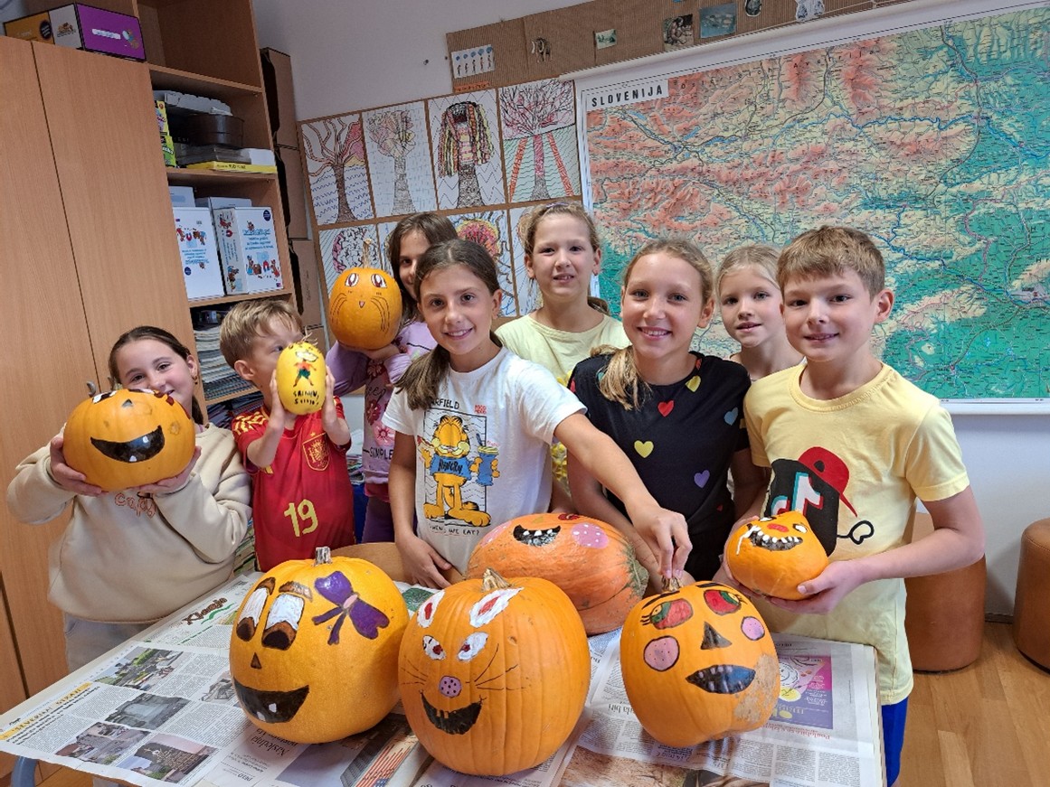Vsaka buča je dobila svojo osebnost – ena nasmejana, druga strašna, tretja prav zabavna. Na koncu smo pripravili razstavo naših “bučnih obrazov” v učilnici in se pogovorili, kaj nam je bilo pri delu najbolj všeč. Skupni zaključek je bil, da umetnost ni v popolnosti, ampak v ustvarjalnosti in veselju do dela. 🎨🎃