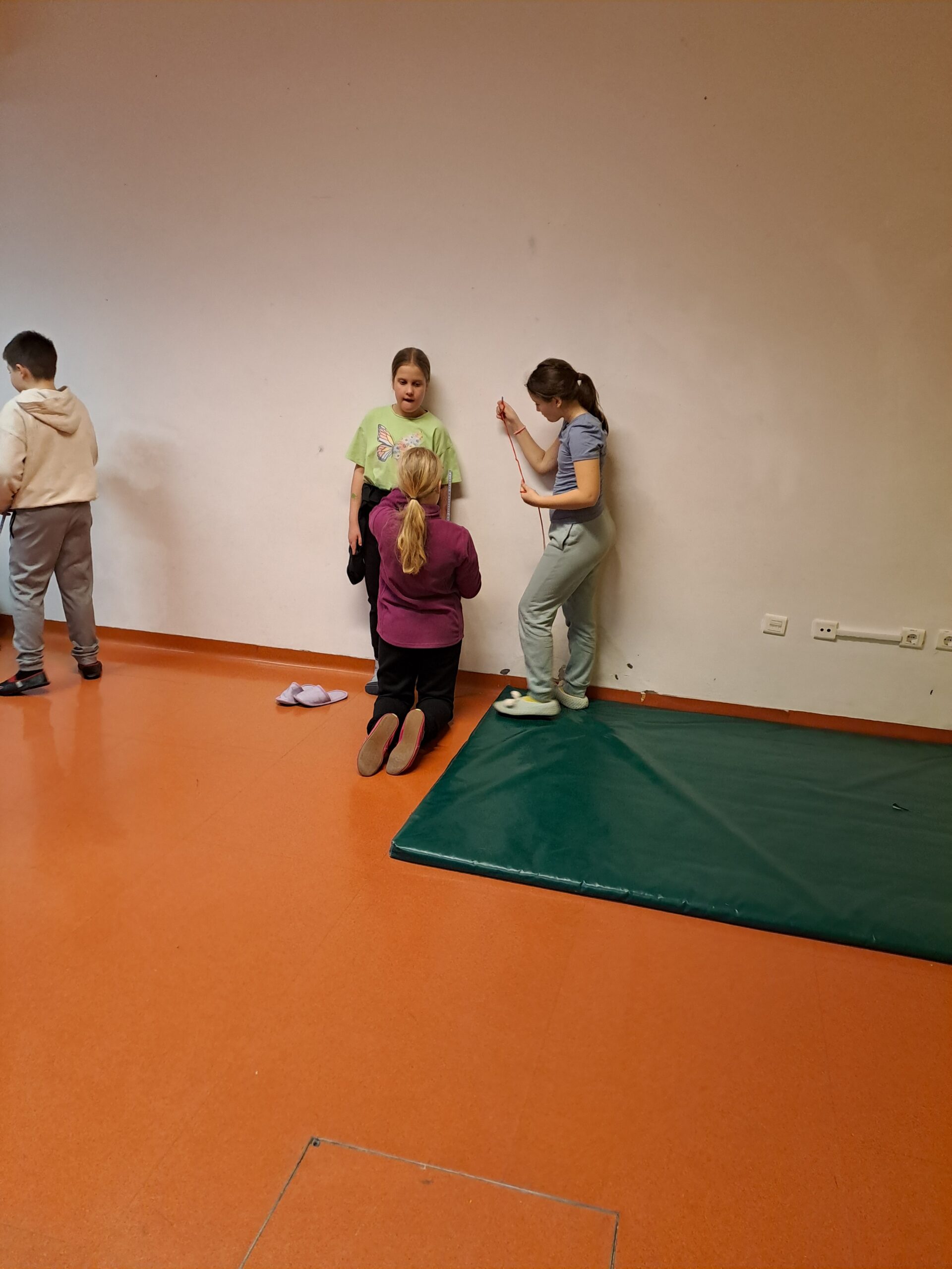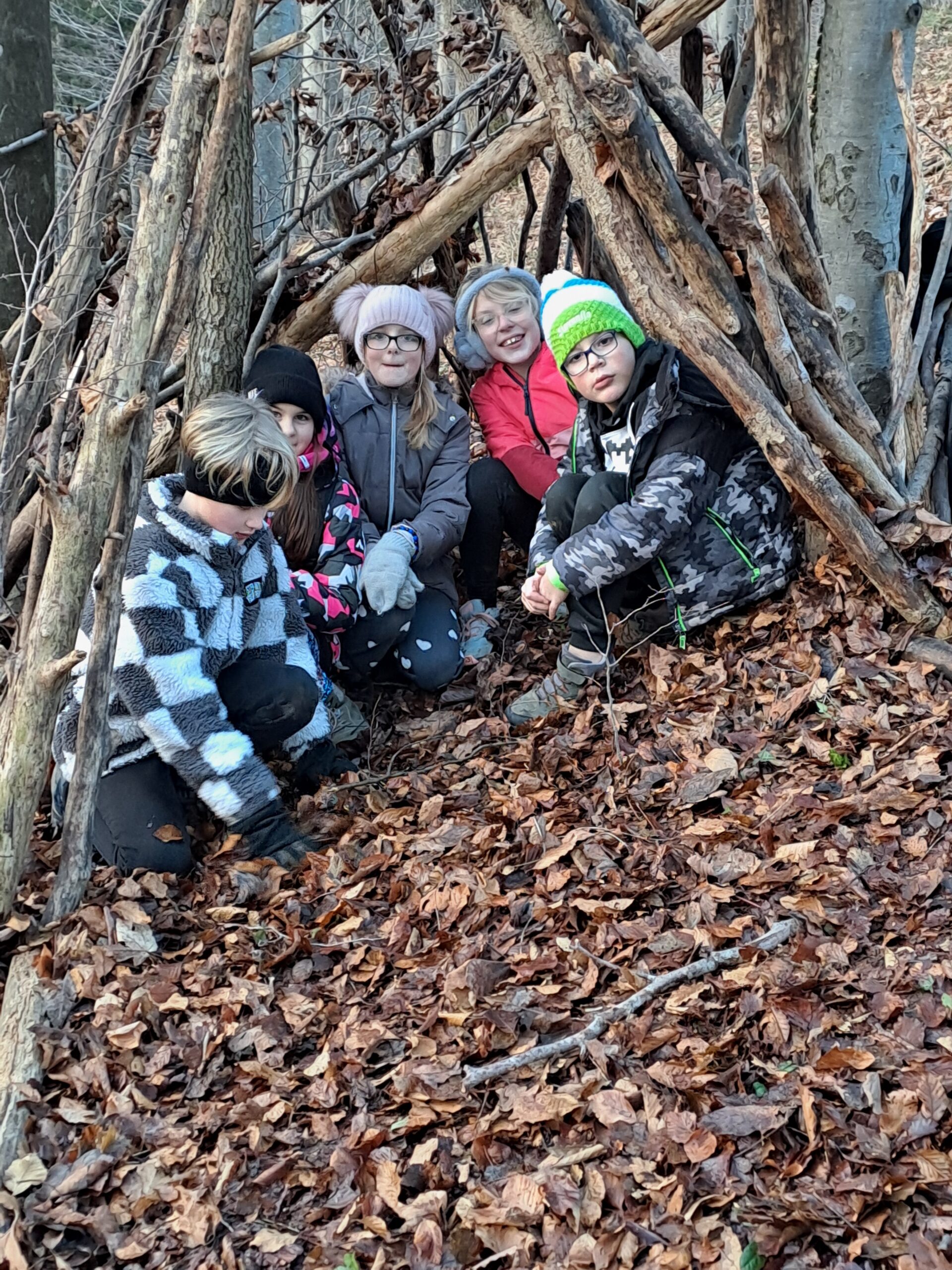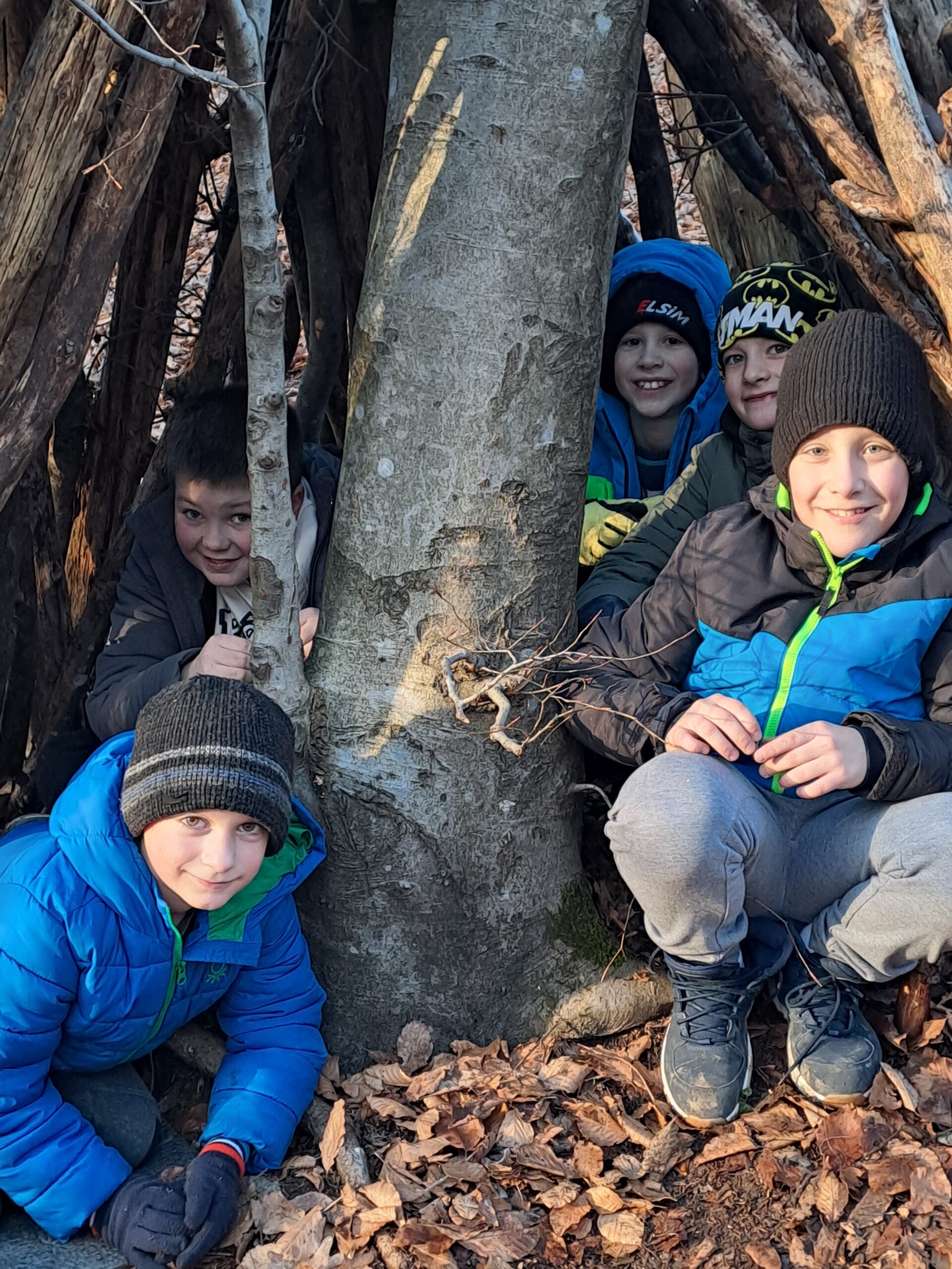 V ponedeljek smo z avtobusom prišli na Medvedje Brdo. Po malici smo se sprehodili do potočka, nato pa po bližnjici odhiteli na kosilo. Siti smo se odšli igrat v sobe. Popoldne smo se učili o preživetju v naravi in zgradili svoje bivake, zvečer pa smo se po temi s svetilkami sprehajali med snežinkami.