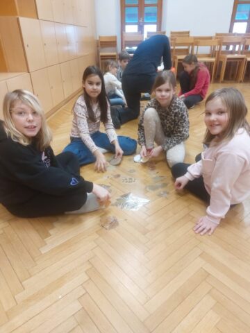 Ko smo v torek odstrli zavese, nas je presenetila čudovita zasnežena pokrajina. Zato smo dopoldne preživeli na snegu. Po kosilu smo se podali na raziskovanje čarobnega vesolja in izdelali maketi.