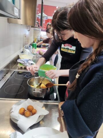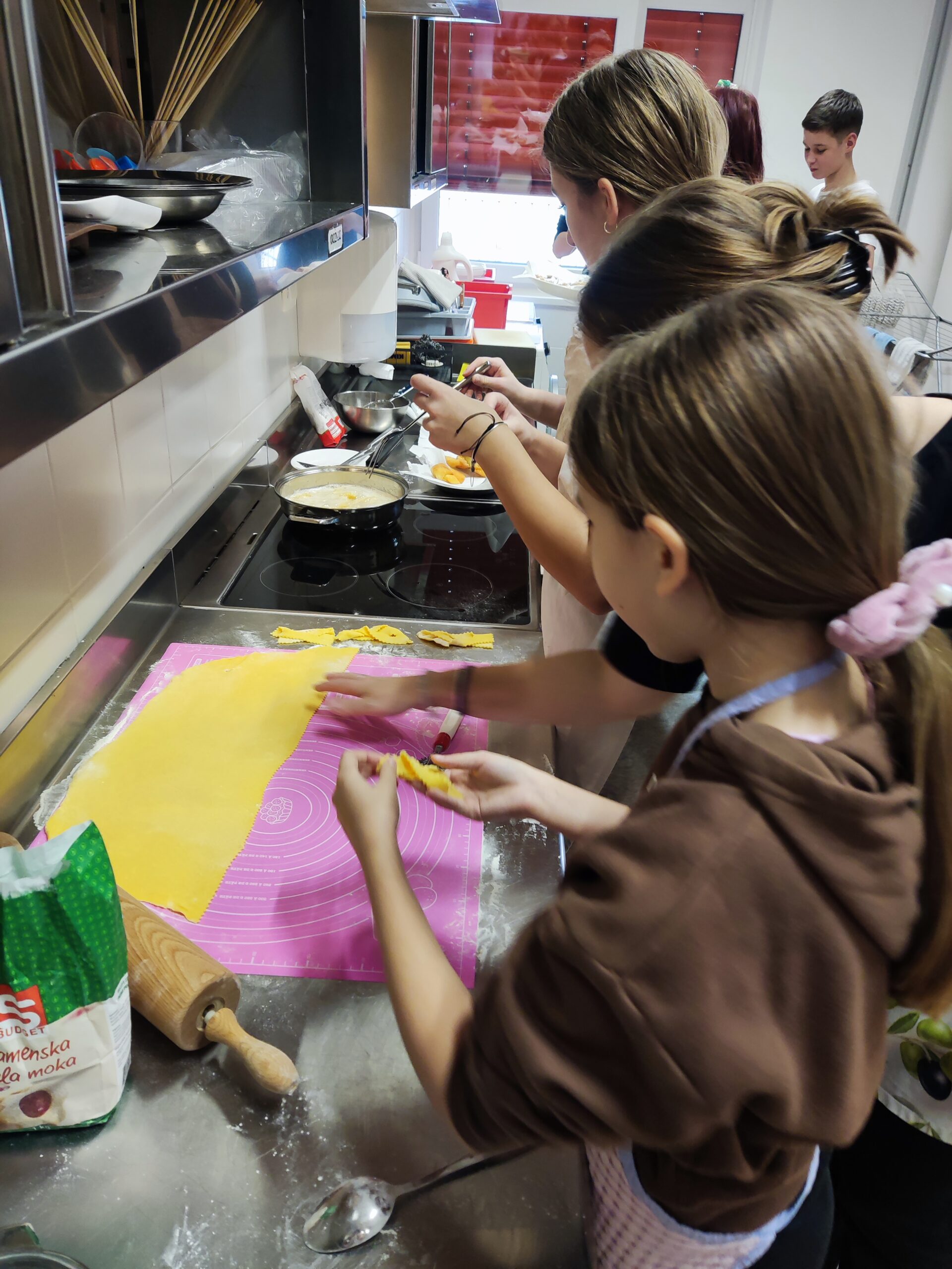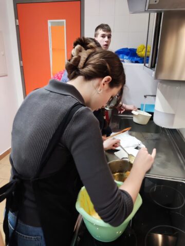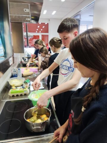 Pust je pred vrati, zato je skupina učencev zvezke zamenjala za predpasnike. V sredo, 11. 2. 2026, so zavihali rokave in povadili pripravo mišk in flancatov.